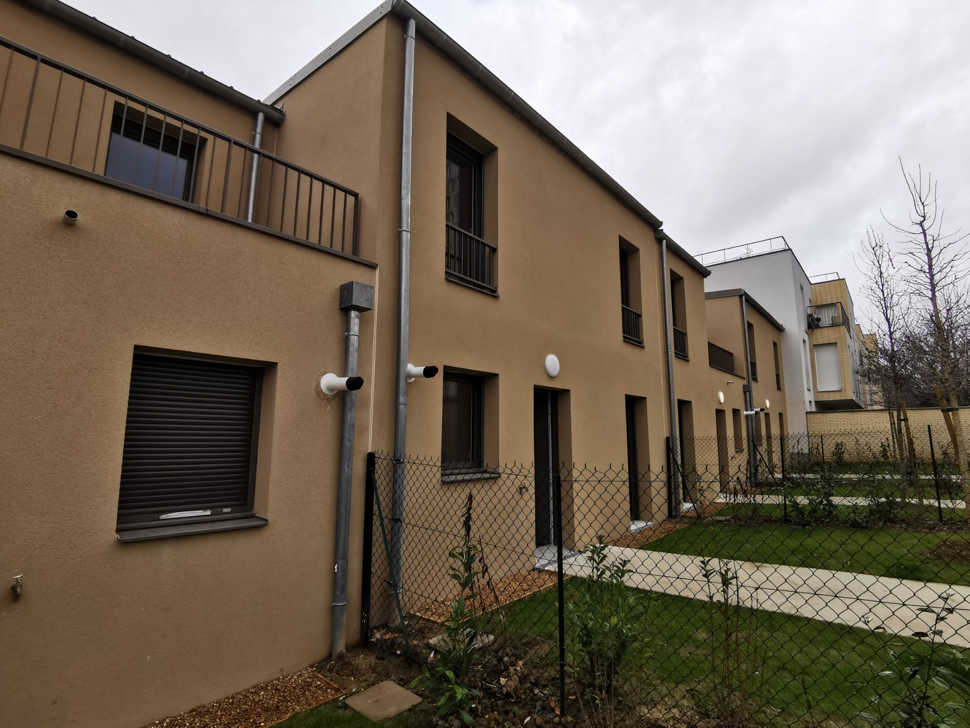 La résidence associe un immeuble de 4 étages aux lignes épurées et des maisons individuelles en bande. Les façades alternent enduit ton sable et plaquette de brique, ponctuées de menuiseries bois-aluminium et de terrasses ou balcons privatifs, qui donnent rythme et chaleur à l’architecture. Les maisons disposent chacune d’un jardin et d’un garage privatif, tandis que l’immeuble propose un parking sécurisé en sous-sol.